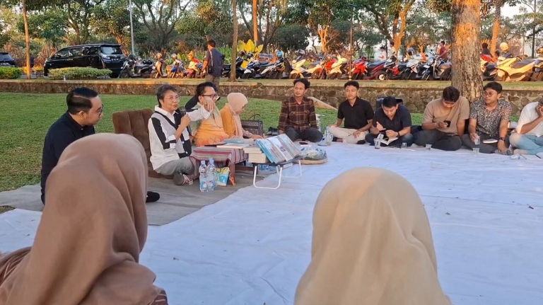 LINIKATA.COM, KUDUS – Badan Eksekutif Mahasiswa (BEM) Universitas Muria Kudus (UMK) menggandeng komunitas pecinta buku Kudus Book Party menggelar diskusi buku berjudul “Bawa Mereka Pulang” karya Fenty Effendy. Acara yang digelar di area Taman Oasis Djarum, Senin (6/10/2025) itu diikuti seratusan anak muda dari mahasiswa hingga masyarakat umum.