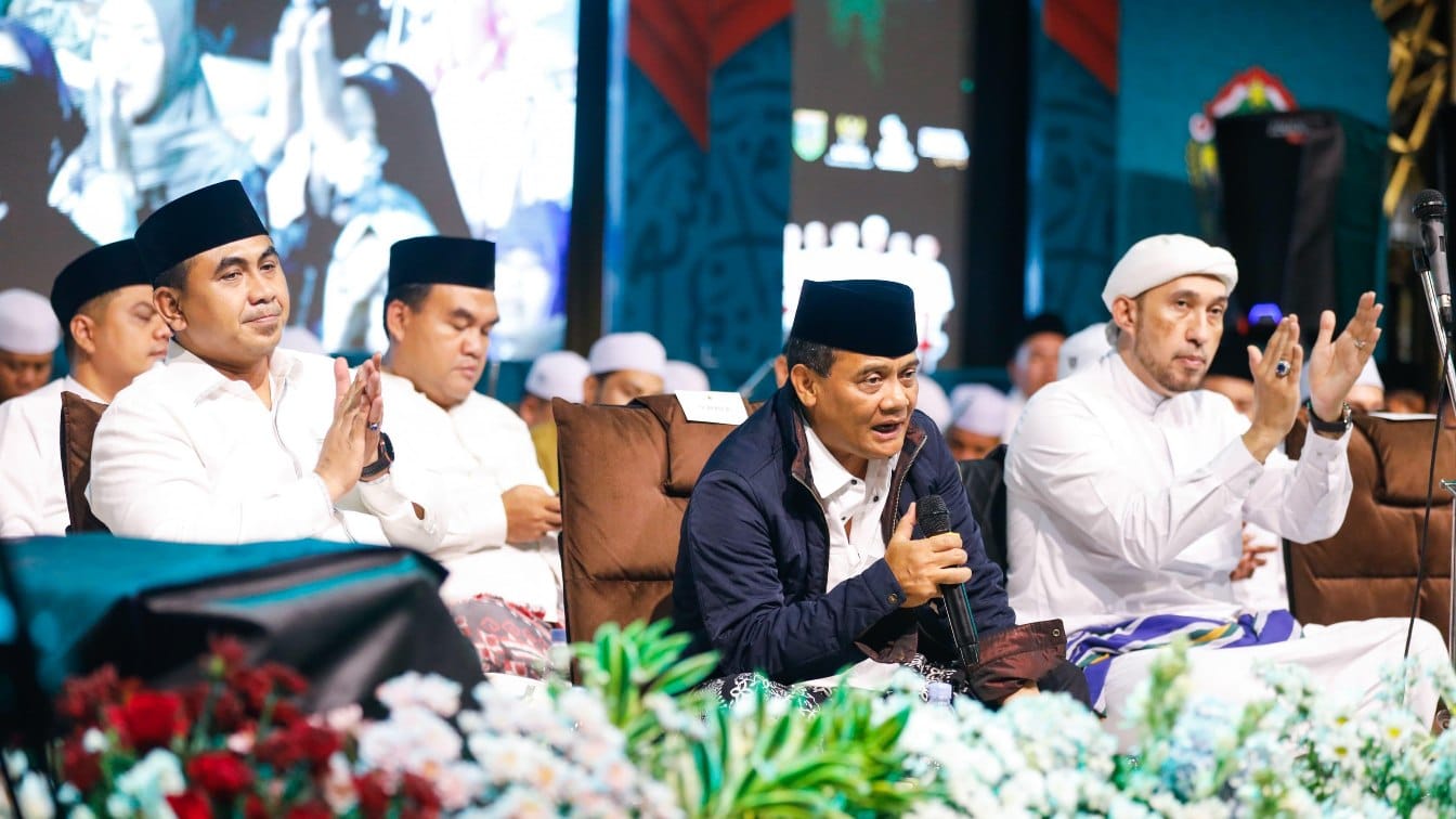 LINIKATA.COM, KUDUS – Gubernur Jawa Tengah Ahmad Luthfi dan Wakil Gubernur Taj Yasin Maimoen meluncurkan program beasiswa santri dan pengasuh pesantren tahun 2026. Peluncuran dilakukan bersamaan dengan acara Jateng Bersholawat dalam rangka peringatan Hari Santri Nasional (HSN) di Alun-alun Kabupaten Kudus, Selasa (21/10/2025) malam.