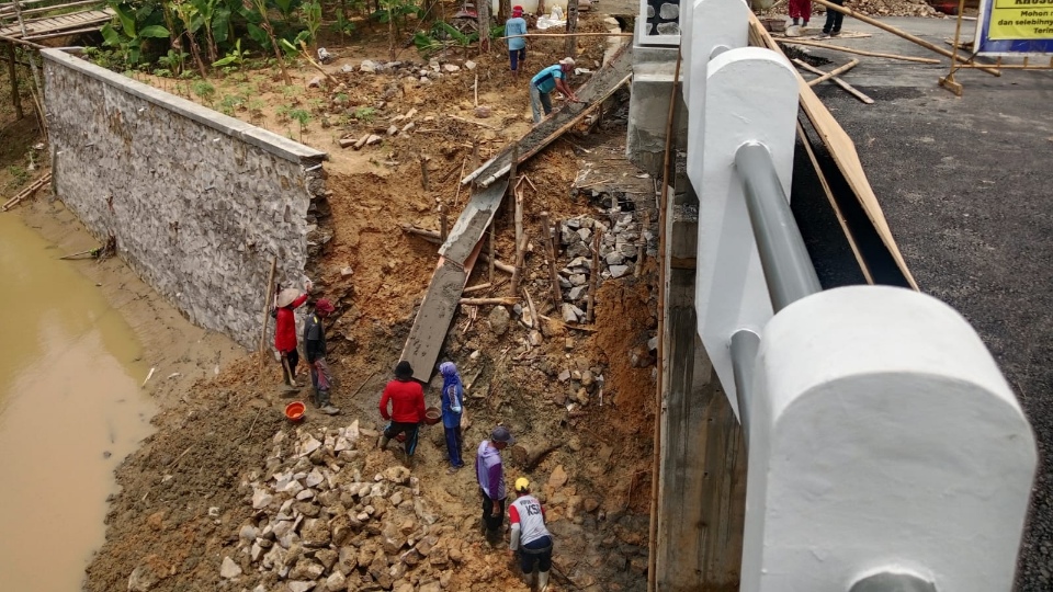 “Sebelum kejadian itu saya mengecek. Memang di beberapa titik, kanan kiri jembatan itu, untuk pengurukannya kurang maksimal. Jadi kejadian kemarin itu memang karena faktor intensitas hujan. Kontruksi tanggulnya juga menurut saya perlu adanya tiang atau penyangga untuk membantu menopang tanggul yang kemarin jebol,” jelas Hadi.