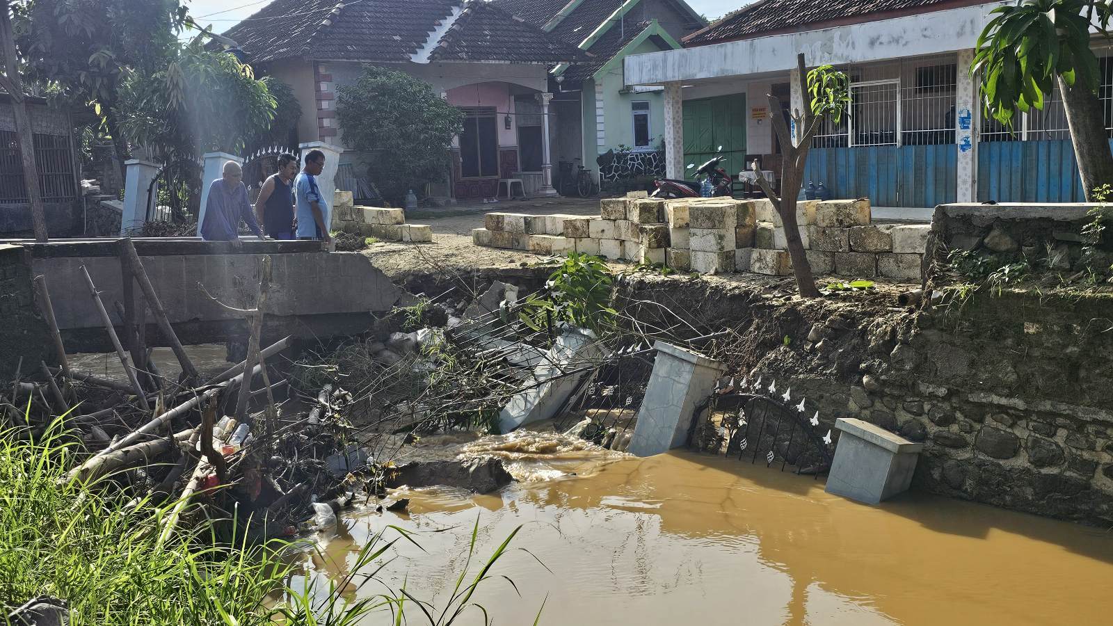 “Kejadian longsornya ini tadi malam setelah ada banjir datang. Jadi bawahnya itu tergerus air. Akhirnya pagar ini langsung ambrol, jatuh sampai ke tengah-tengah kali,” beber dia.