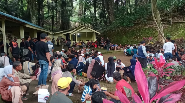 Usai berdoa, warga kemudian makan bersama. Bekal mereka disantap bareng keluarga dan tetangga. Sejumlah warga Desa Tajungsari, personel TNI hingga Polri juga tampak hadir dan ikut menyantap bersama.