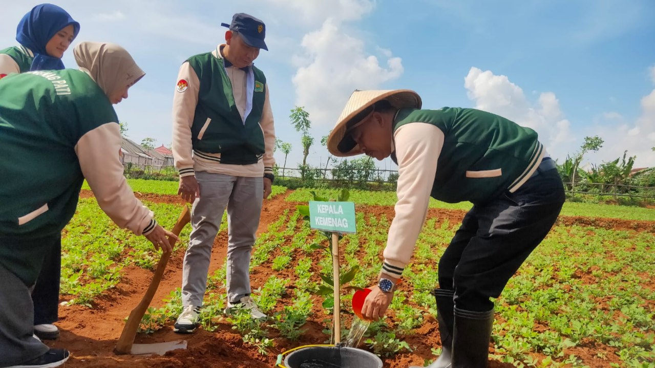 LINIKATA.COM, PATI – Kantor Kementerian Agama (Kemenag) Republik Indonesia menanam seribu bibit pohon di 21 kecamatan secara serentak, Jumat (12/12/2025). Penanaman secara simbolis dilakukan di Bariklana Farm yang dikelola Koperasi Pegawai Republik Indonesia (KPRI) Barokah Kemenag Kabupaten Pati di Dukuh Muktisari, Desa Muktiharjo, Kecamatan Margorejo, Kabupaten Pati.