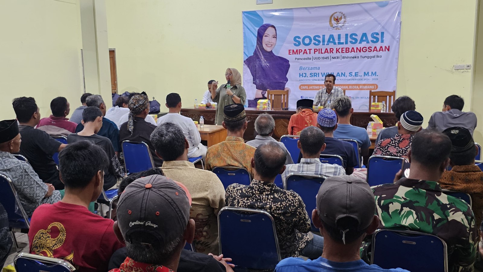 LINIKATA.COM, PATI – Anggota DPR RI Komisi VIII dari Fraksi NasDem, Sri Wulan, menggelar Sosialisasi Empat Pilar Kebangsaan yang menyasar warga terdampak bencana. Kegiatan ini menjadi upaya memperkuat persatuan bangsa dan mencegah perpecahan di tengah berbagai bencana alam yang melanda sejumlah daerah. Sosialisasi berlangsung di Balai Desa Ketitangwetan, Kecamatan Batangan, Kabupaten Pati, Rabu (17/12/2025).
