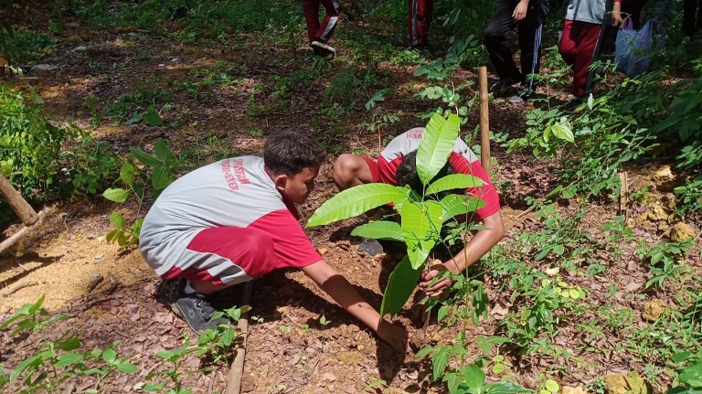 ”Anak-anak membawa pohon bibit buah sendiri. Awalnya diperikirakan 150. Tapi semakin berkembang banyak yang ikut. kurang tahu jumlahnya. Tapi ada seribuan bibit pohon yang ditanam. Ada bibit alpukat, sawo, mangga, matoa dan macam-macam buah lainnya,” tutur dia.