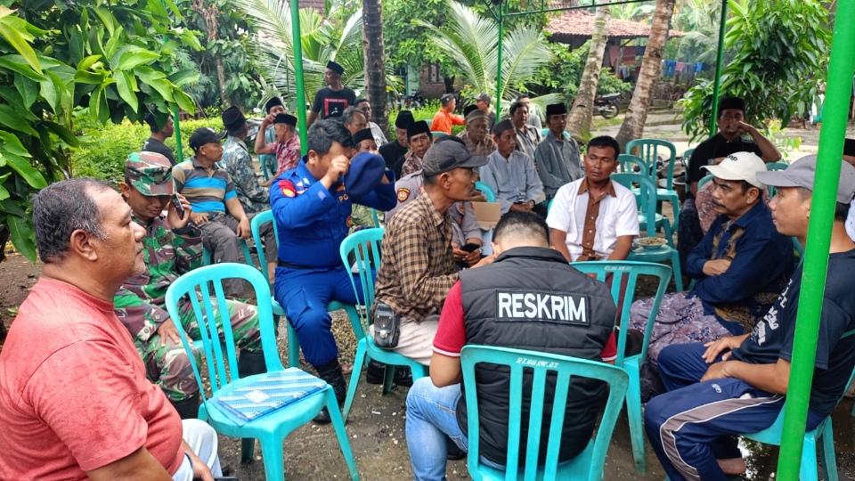 Sejumlah warga dan personel kepolisian takziyah di rumah warga Bakalan, Dukuhseti, Pati yang meninggal saat mencari kerang, Minggu (4/1/2026). Foto: Humas Polresta Pati