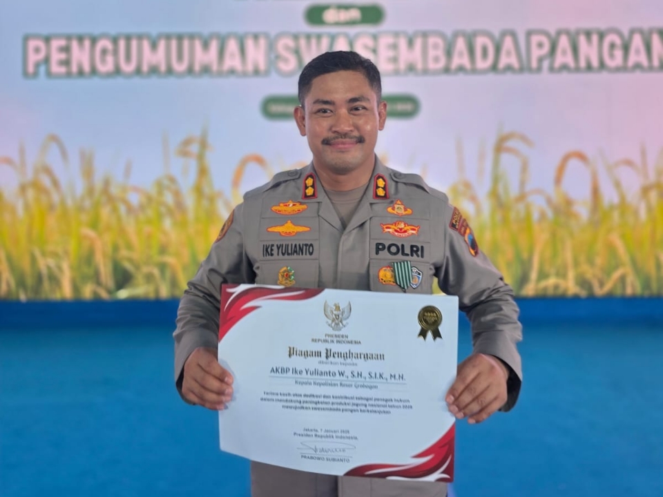 Penghargaan ini menjadi bentuk apresiasi atas peran aktif AKBP Ike Yulianto dalam mendukung program strategis nasional di sektor ketahanan pangan.