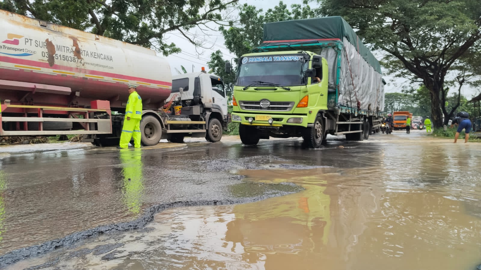 Untuk mengurai kepadatan lalu lintas, pihaknya menerjunkan 24 personel yang dibagi dalam tiga shift. Masing-masing berjaga selama enam jam di beberapa titik untuk mengatur arus lalu lintas karena kondisi jalan rusak parah.