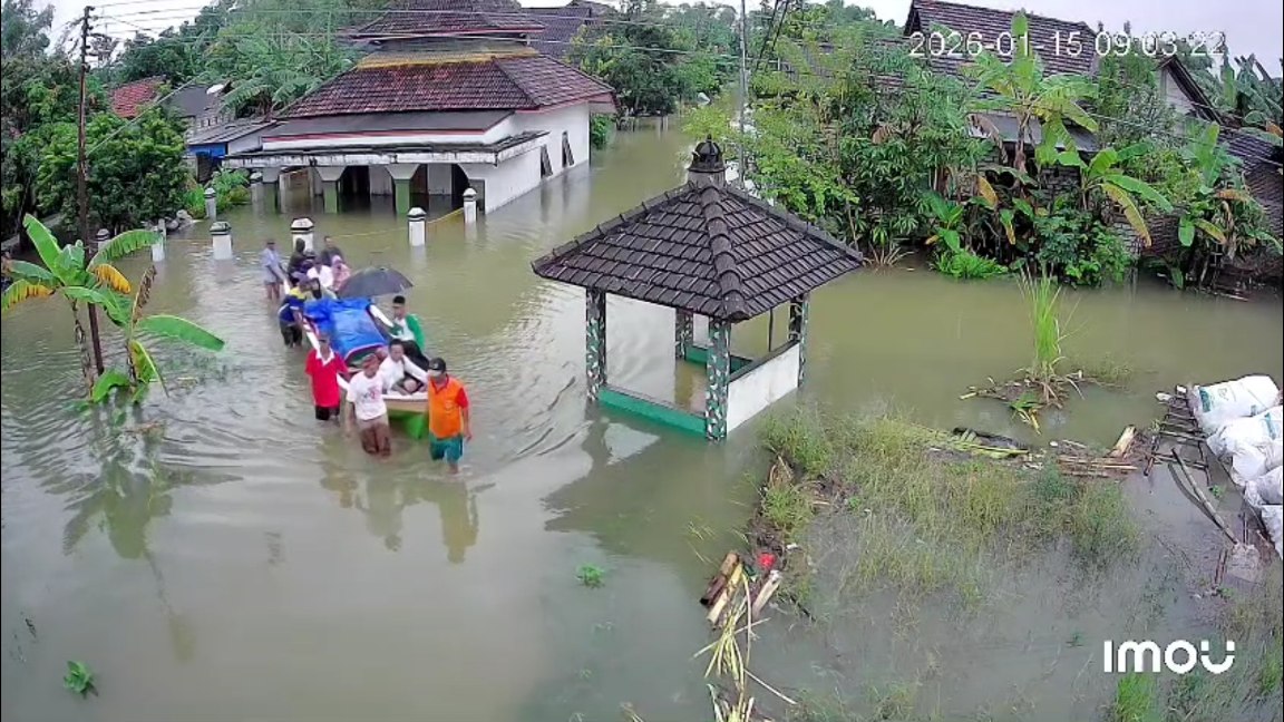 “Ketinggian air di dalam rumah berkisar antara 5 hingga 60 sentimeter. Sementara di jalan raya, ketinggiannya mencapai 5 hingga 90 sentimeter. Sepeda motor kecil sudah tidak bisa melintas,” jelas Mustaji.