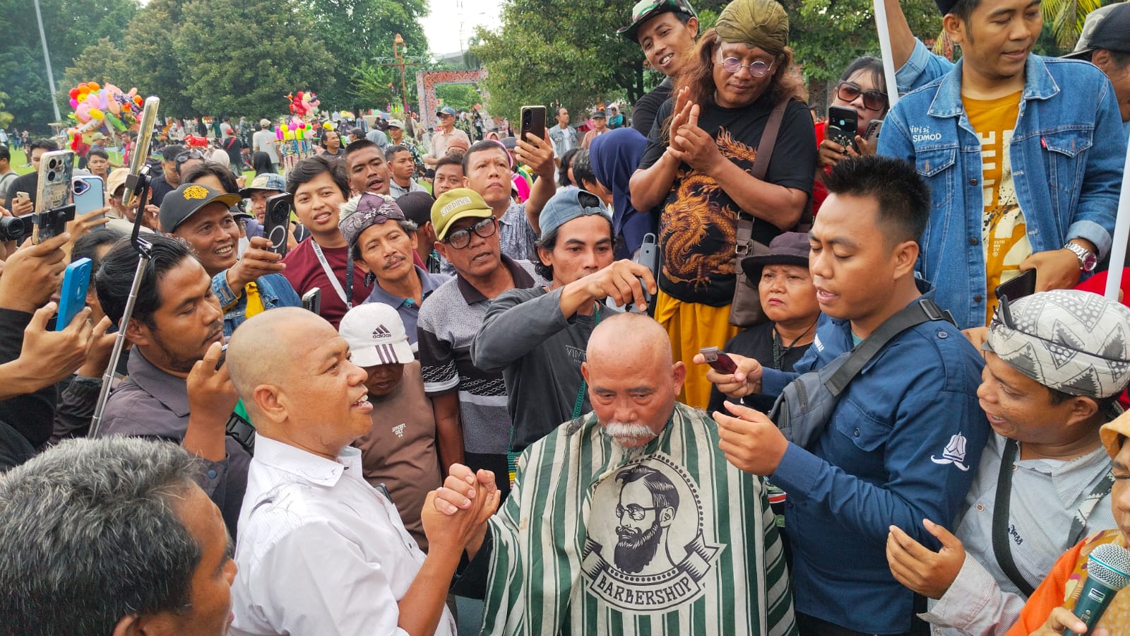 LINIKATA.COM, PATI – Sepuluh warga Kabupaten Pati melakukan aksi cukur gundul dalam Tasyakuran Rakyat di Alun-Alun Pati, Jumat (23/1/2026) siang. Aksi ini untuk memenuhi nazar atas penetapan tersangka Bupati Pati Nonaktif, Sudewo, oleh Komisi Pemberantasan Korupsi (KPK) terkait kasus dugaan pemerasan calon perangkat desa.