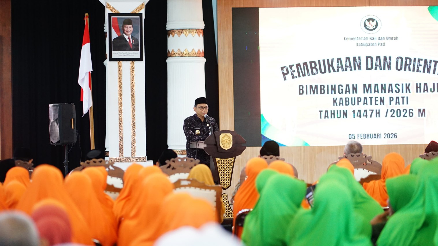 “Saya mengucapkan selamat kepada Bapak Ibu sekalian yang telah memperoleh kesempatan dari Allah SWT untuk menunaikan Rukun Islam yang kelima. Ibadah haji membutuhkan kesiapan mental, fisik, dan spiritual agar pelaksanaannya dapat berjalan dengan optimal,” ujar Chandra dalam Pembukaan dan Orientasi Bimbingan Manasik Haji Kabupaten Pati yang digelar di Pendapa Pati, Kamis (5/2/2026).