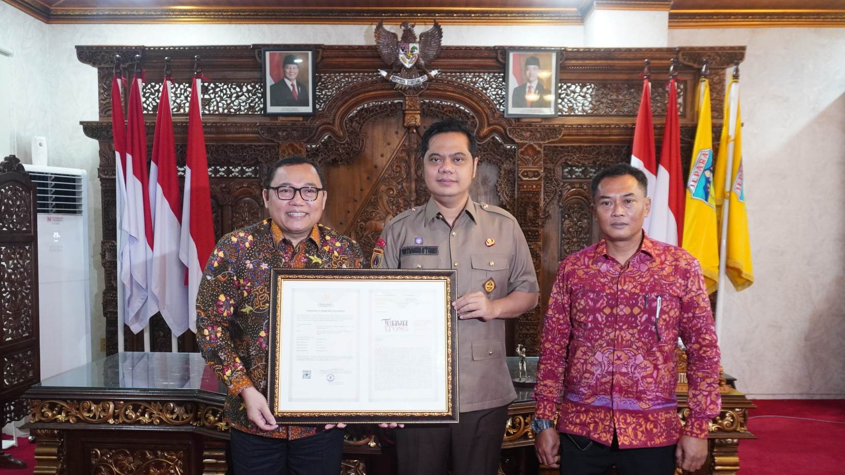 Penyerahan sertifikat IG dilakukan secara simbolis oleh Kakanwil Kemenkumham Jateng, Heni Susila Wardoyo, kepada Bupati Jepara, Witiarso Utomo, di Pendopo Kabupaten, Kamis (5/2/2026). Heni menekankan bahwa keberhasilan ini merupakan buah manis dari kerja sama lintas sektoral.
