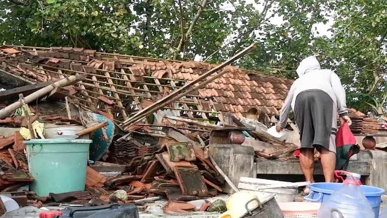 “Angin datang mendadak dari arah utara dan langsung merobohkan rumah. Orang tua saya tertimpa kayu penyangga (blandar) dan genting. Karena hujan sangat deras, warga baru bisa menolong 30 menit kemudian,” ujar Santoso saat ditemui di lokasi, Selasa (31/3).