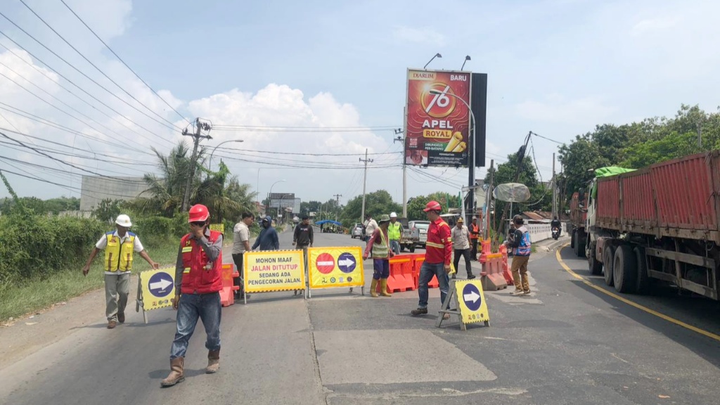 LINIKATA.COM, PATI – Arus lalu lintas di jalur pantura, tepatnya di Jalan Lingkar Juwana, diprediksi akan mengalami kepadatan menyusul adanya perbaikan jalan di titik tersebut. Guna mengantisipasi penumpukan kendaraan, Satlantas Polresta Pati telah menyiapkan rekayasa lalu lintas.